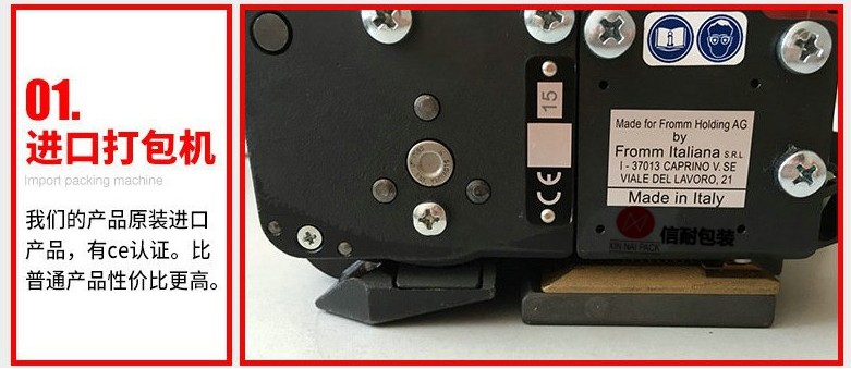 FROMM公司出品的經典機型P323改進型,雙馬達電動打包工具,手提充電式,攜帶方便,打包不受場地和電源地限制。采用束緊輪收緊,拉力大,可調整大小,摩擦時間可根據包裝帶特性隨意調整,拉緊和摩擦切帶分別由兩個電機工作,能有效延長機器壽命,故障率極低。維護成本低。特別適用于磚窯業等作業環境惡劣的場所,是一款值得大力推薦的包裝工具。