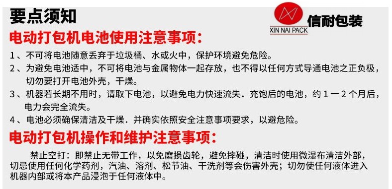 1、電動打包工具禁止空打,即禁止無帶工作,以免磨損齒輪。